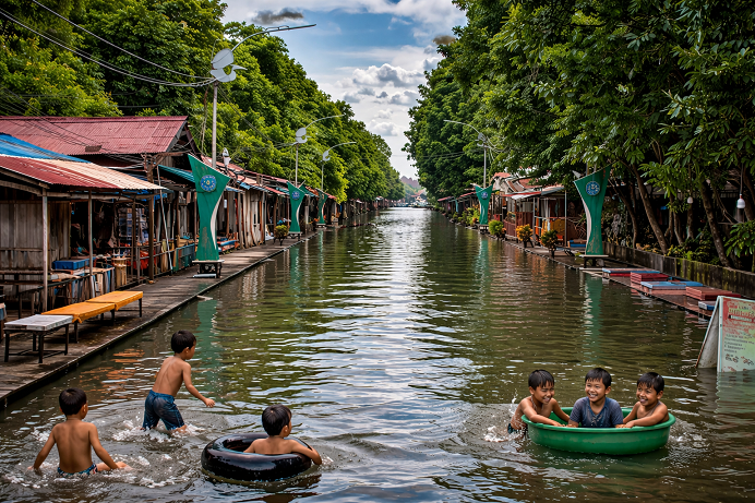 Tak hanya dari langit, ancaman juga datang dari daratan yang lebih tinggi. Banjir kiriman dari wilayah hulu masih menjadi momok yang sulit dikendalikan. Awal tahun ini menjadi bukti, ketika lebih dari 100 hektare wilayah terendam, dengan kawasan Api-Api menjadi salah satu yang paling terdampak.